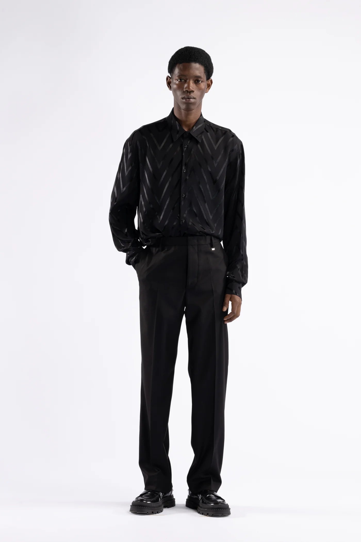 Camicia in viscosa fantasia - Nero